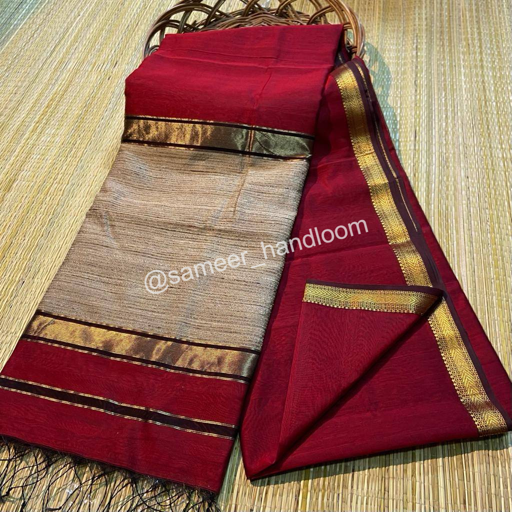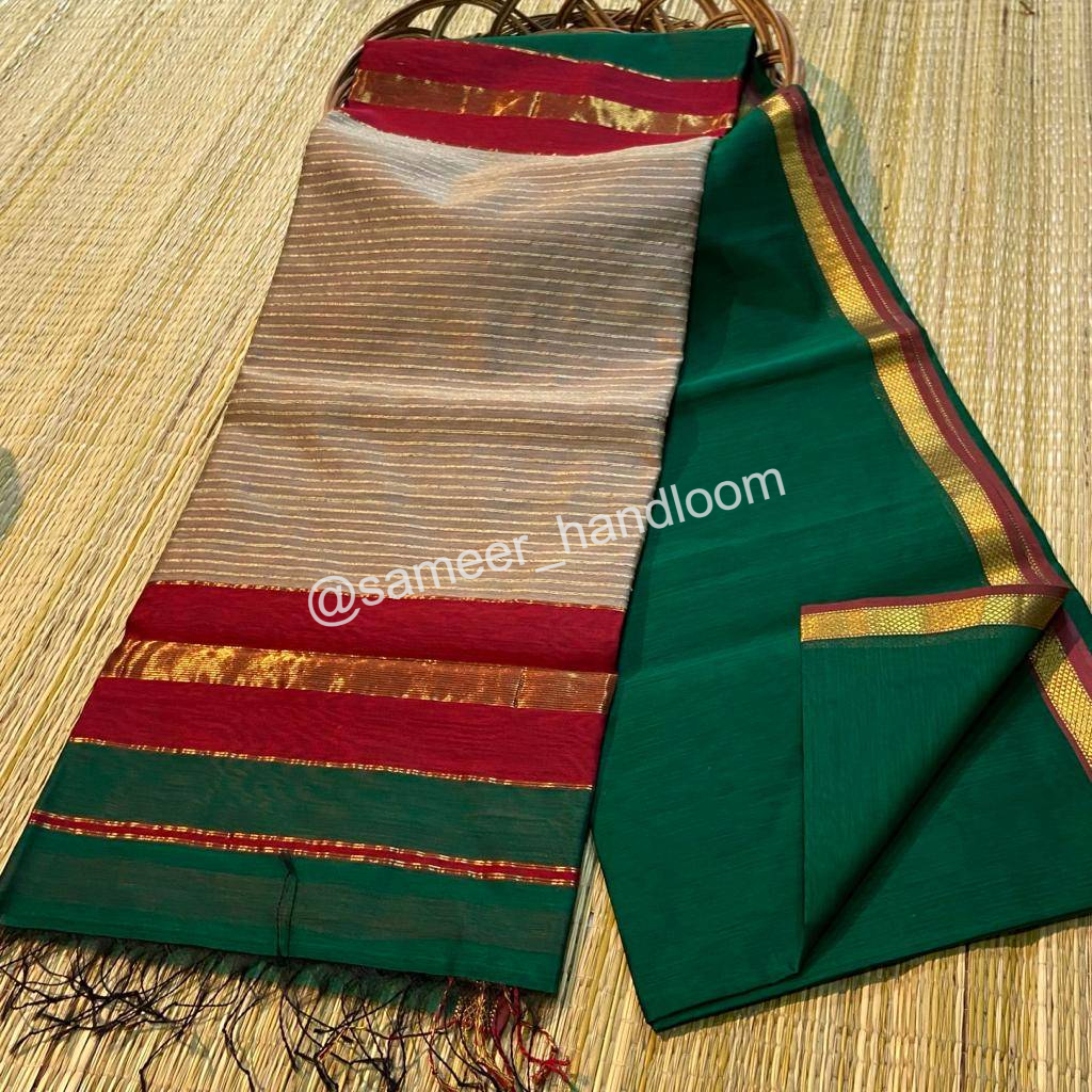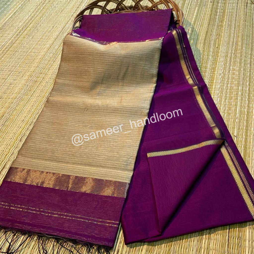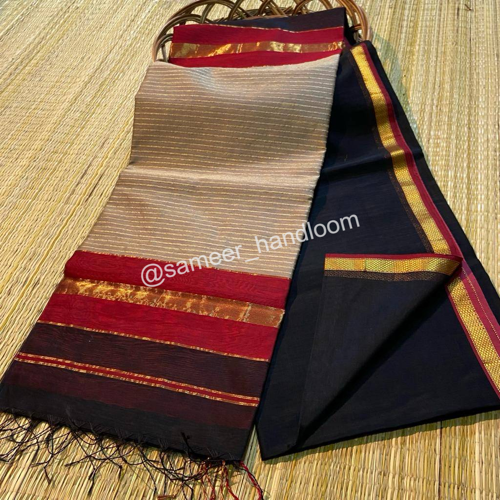 | Maheshwari Handwoven Kosa Pallu Sarees | ||
