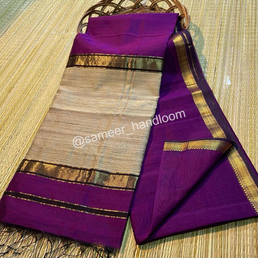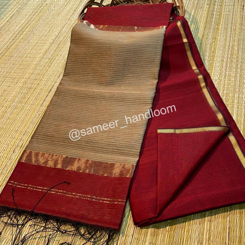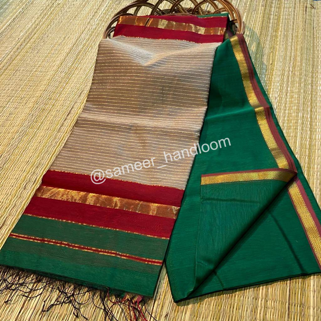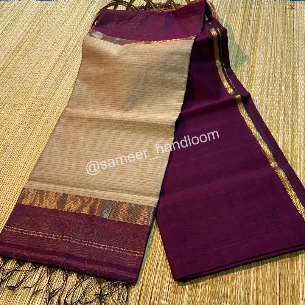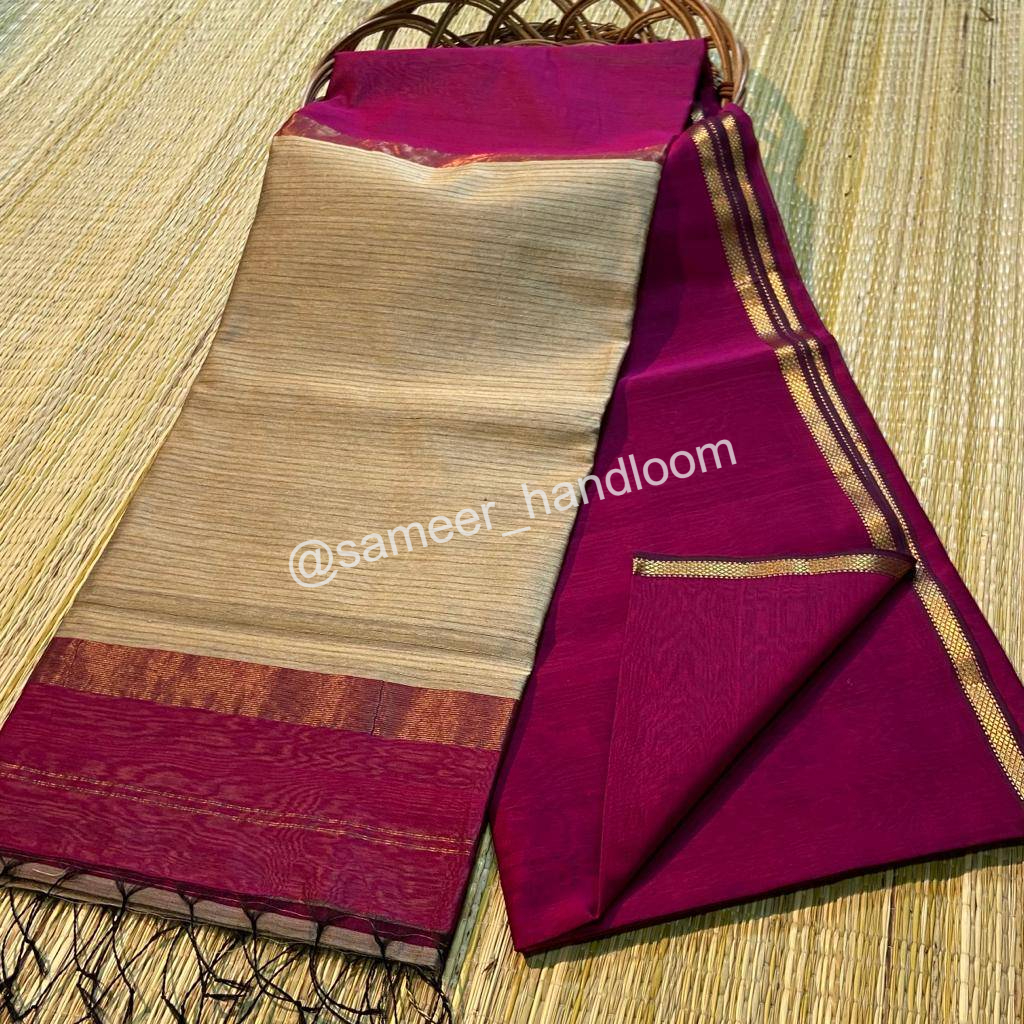| Maheshwari Handwoven Kosa Pallu Sarees | ||