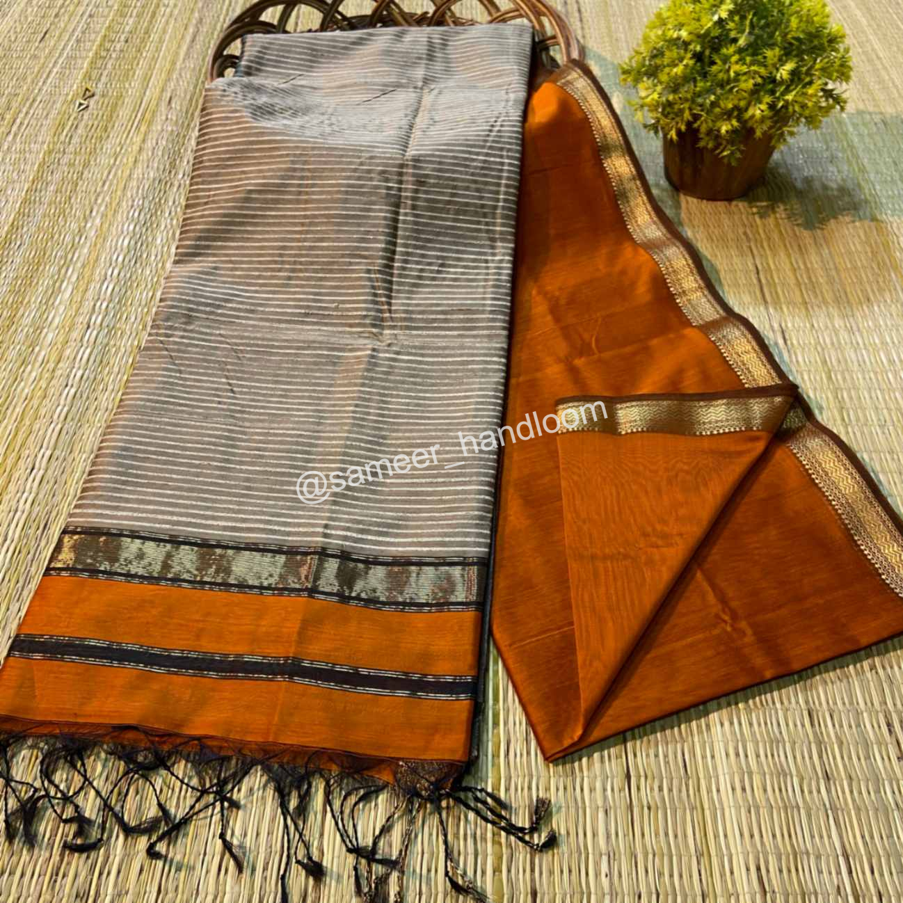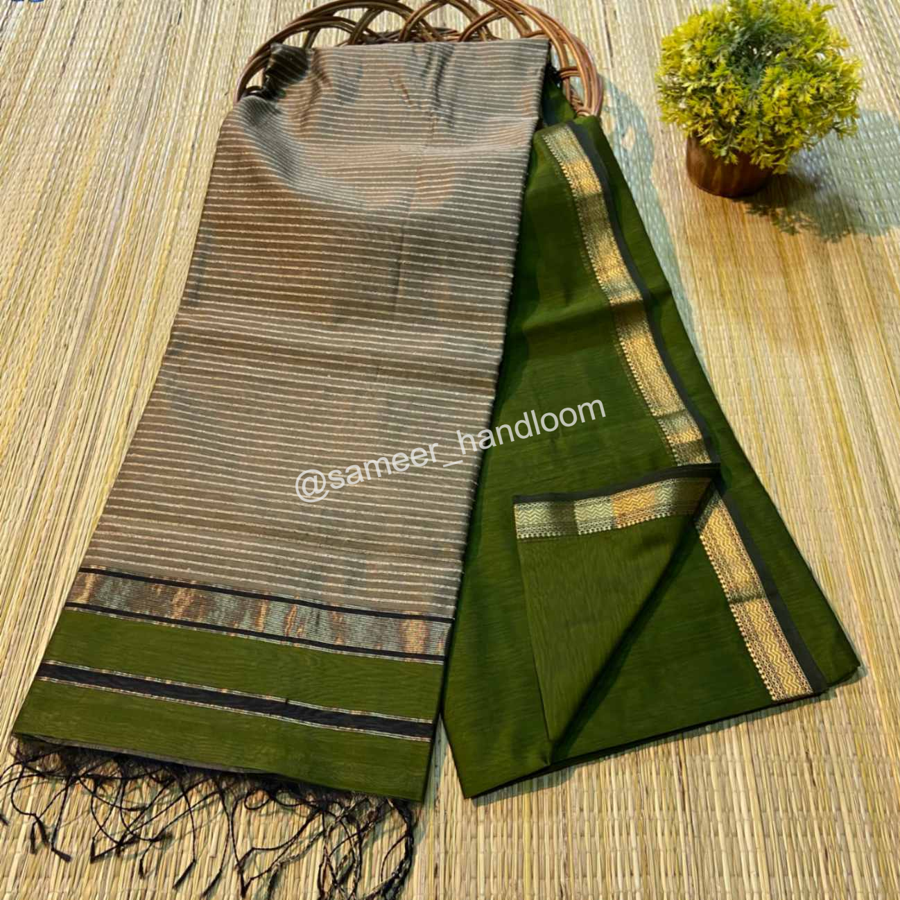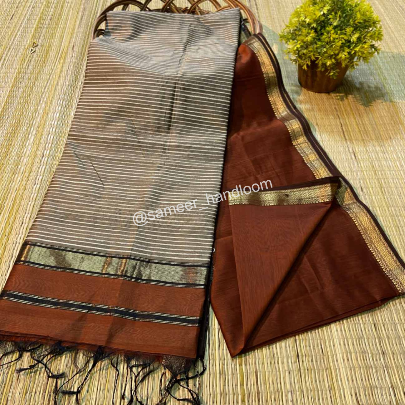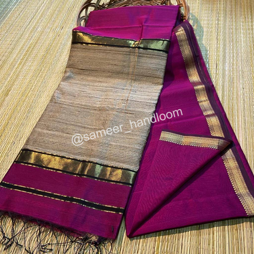 | Maheshwari Handwoven Kosa Pallu Sarees | ||