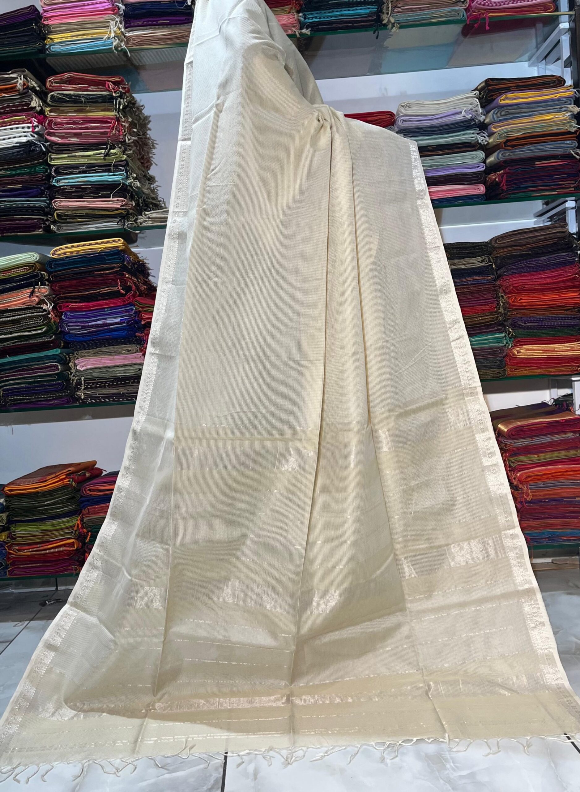 Maheshwari Silver Chex Sarees